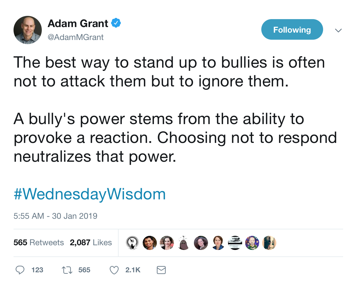 I am not sure exactly what Adam Grant, organizational psychologist, writer and speaker had in mind when he posted this tweet on January 30th, 2019, but personally, his tweet made me think of President Donald Trump.