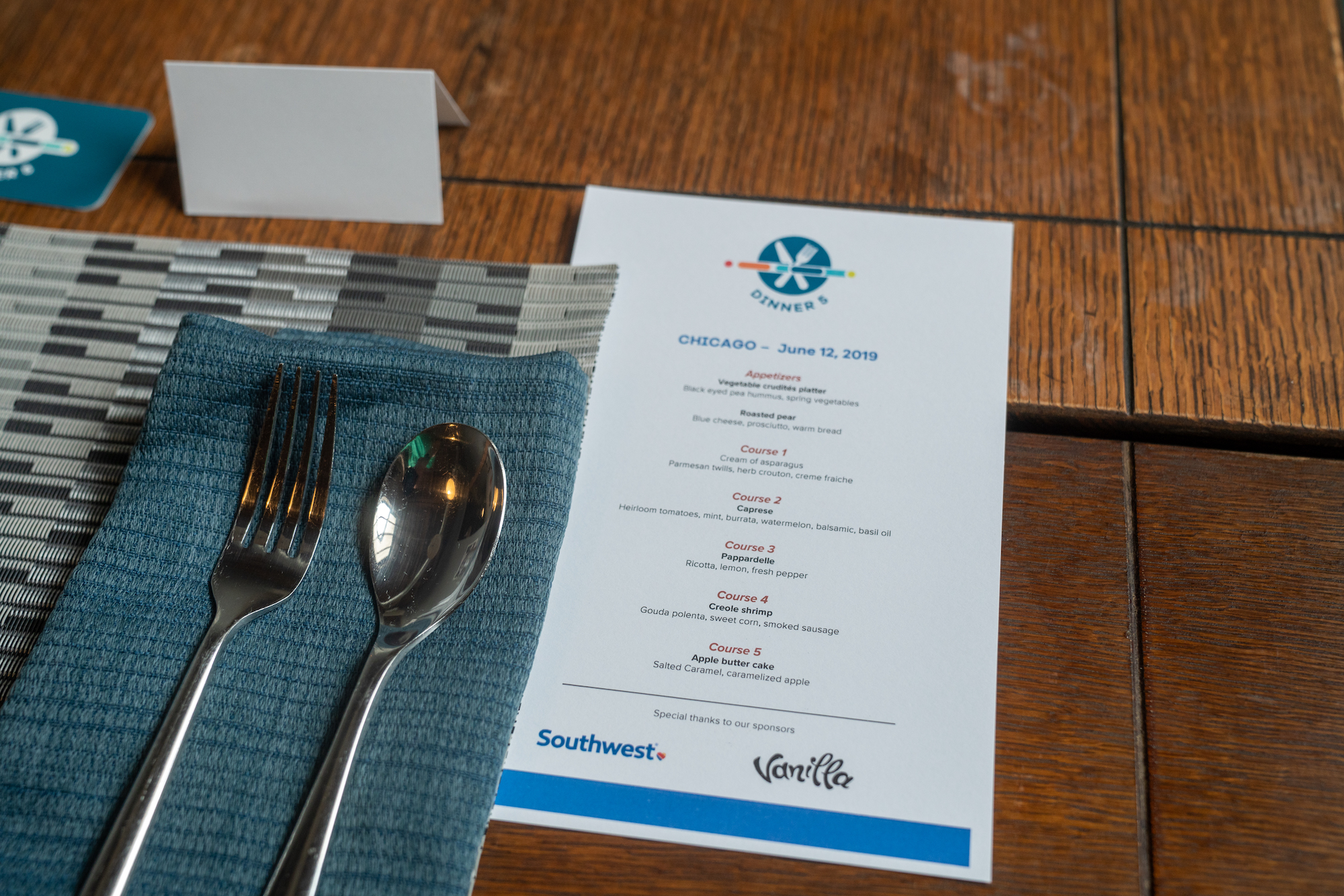 Jake had arranged for an amazing five course catered meal, which we all enjoyed thoroughly. The cost of the event was underwritten by sponsors Southwest Airlines and Vanilla Forums, and Southwest was even generous enough to throw in a free roundtrip flight certificate for each attendee.