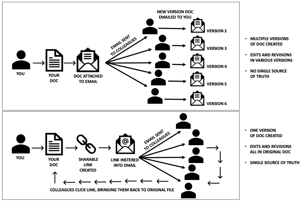 Complicated though the phrase may sound, you have dealt with this. I promise. You have either had to navigate through a complicated list of files or folders to find the work you need to do, or you have tried to share information with others quickly, probably not realizing that you were making everyone’s job more difficult and complicated, simply because you were attaching a file to an email. It often happens like this…