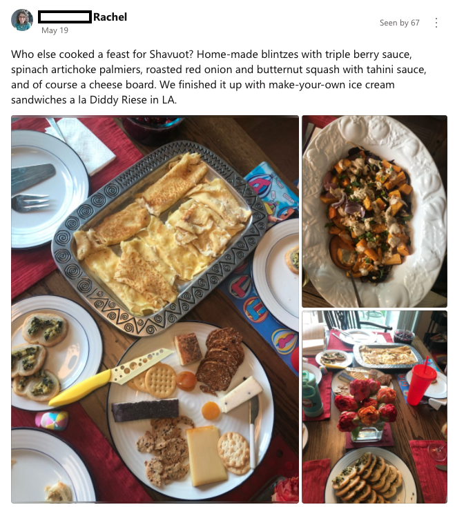 Soon, everyone was sharing in the Pandemic Potluck group. We were sharing photos of the breads and challahs we were creating. We shared photos of dinners we made, and photos of our kids helping us cook.