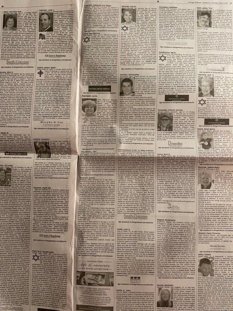 We had a choice to spend money on an obituary. In many cases, our neighbors on the west and south side of Chicago have no choice at all. That same $400 instead might need to be used to pay for rent, or food, or other basic needs. And yet they continue to die. Over 300 shootings every month, over 60 deaths every month from those shootings. That obituary section should be pages and pages long.